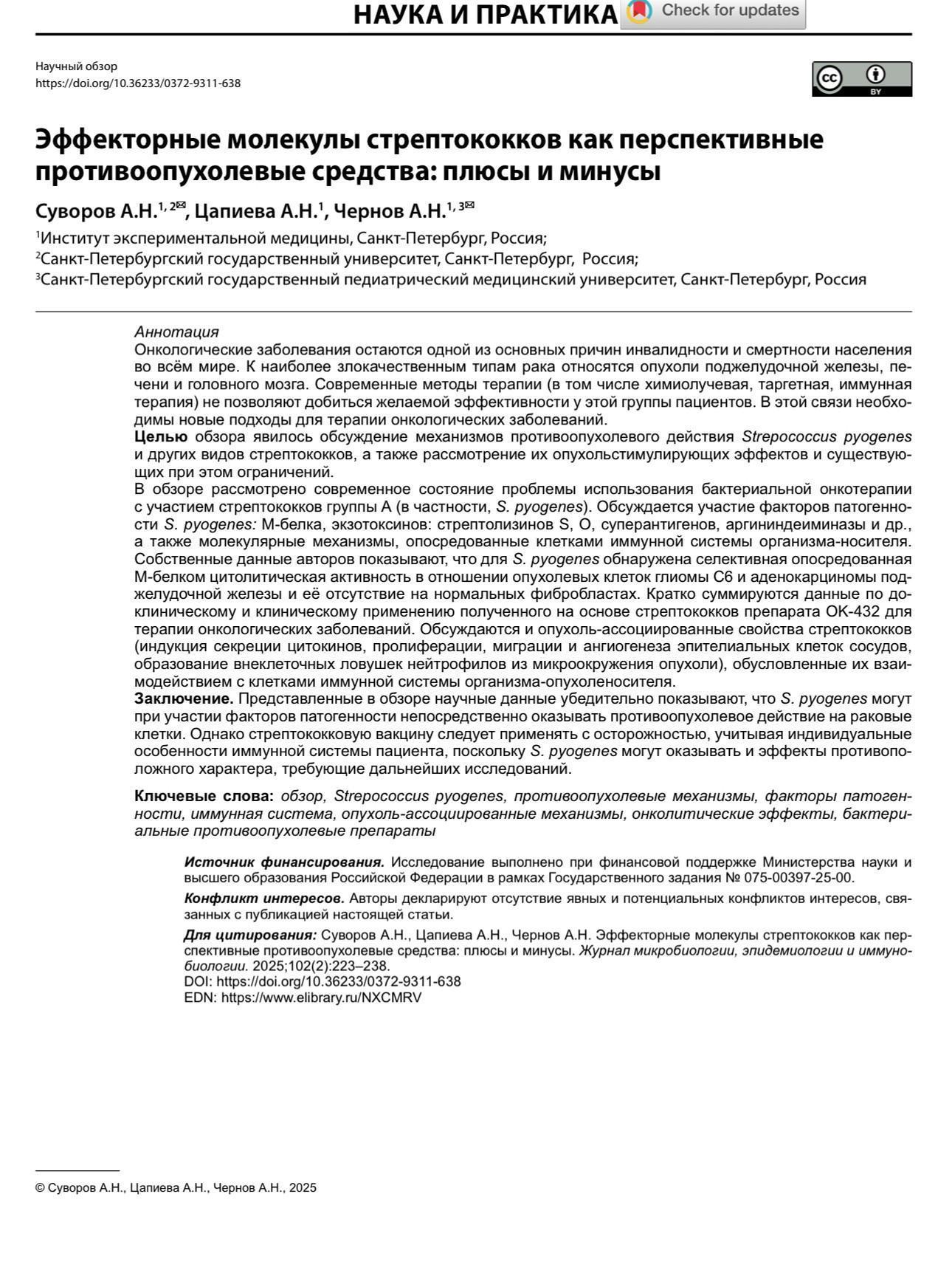 Исследования в области применения стрептококка для борьбы с раком активно ведутся в российских научных центрах.
