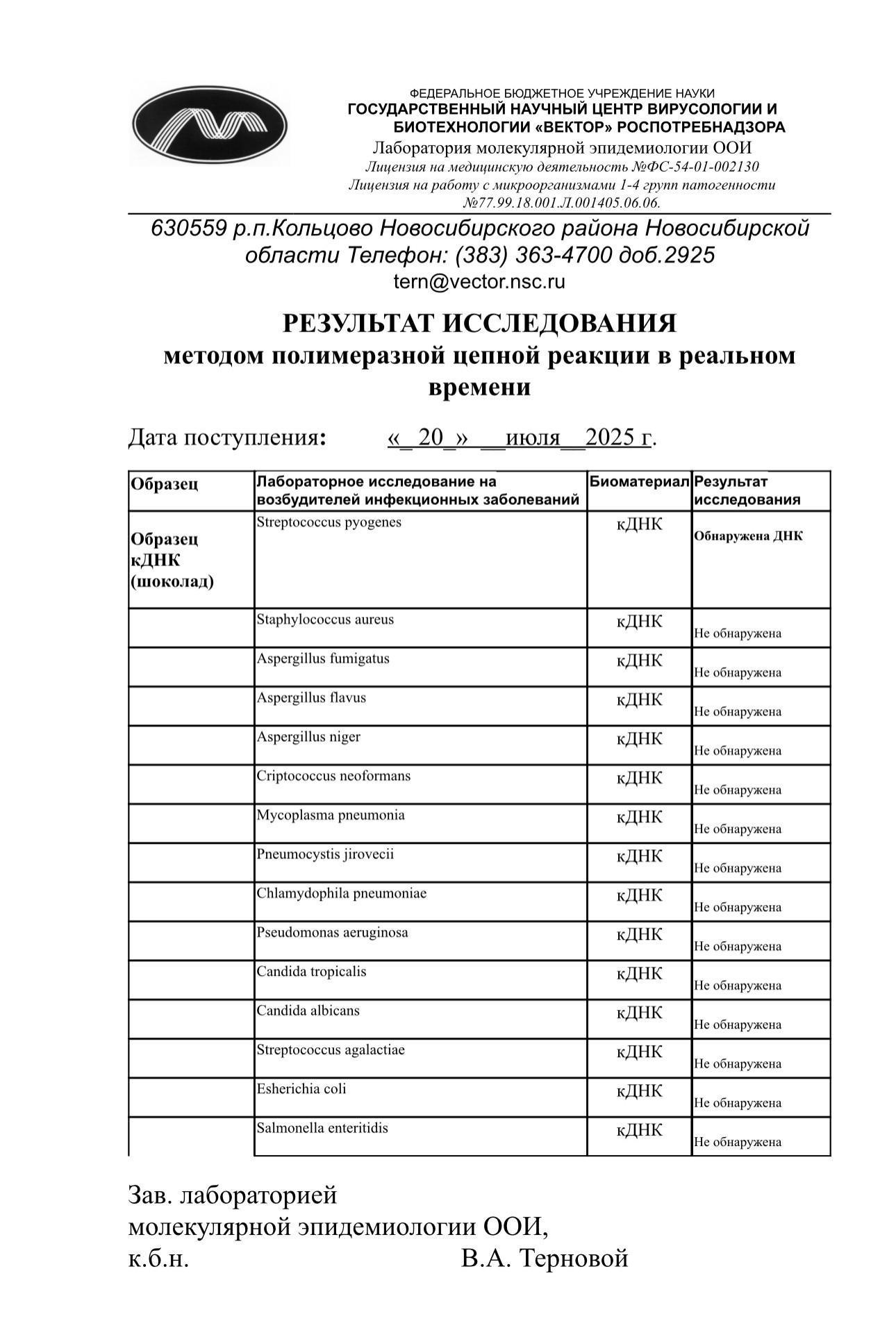 Ключевым результатом стало доказательство того, что «Биошоколад» содержит именно тот штамм модифицированного стрептококка, который демонстрирует перспективные свойства в борьбе с онкологическими заболеваниями.